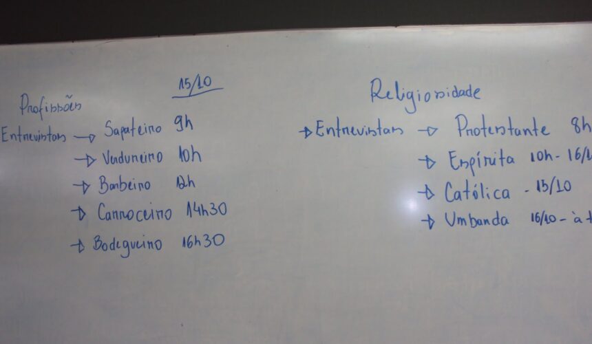 A idéia dos alunos do ponto de cultura é que a partir desses registros sejam produzidos documentários que serão editados em novembro, onde tanto as profissões quanto as manifestações de religiosidade e fé possam ser socializados enquanto cultura e memória coletiva respeitando suas diversidades e pluralidades.
