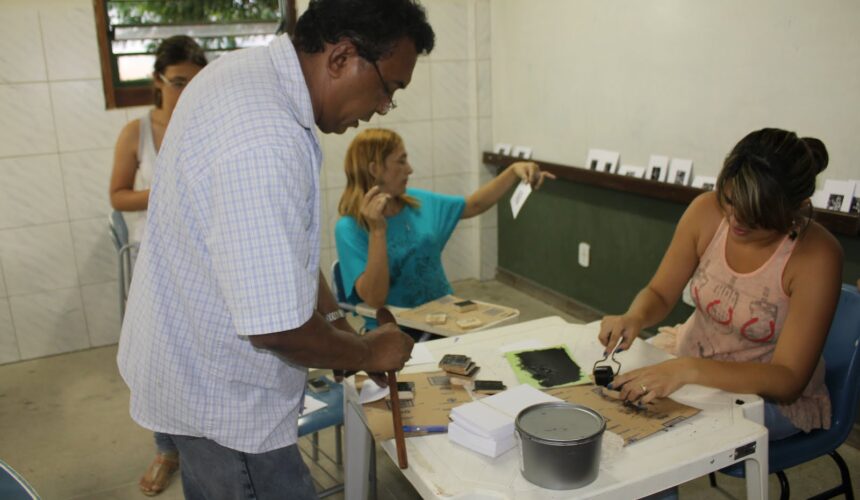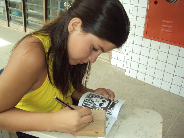 Durante a tarde de sexta, todo sábado e domingo pela manhã, um grupo de 18 pessoas, a maioria estudantes e professores desenvolveram suas habilidades na arte da xilogravura para ilustração de cordéis com a temática Patativa do Assaré, como propõe o projeto.