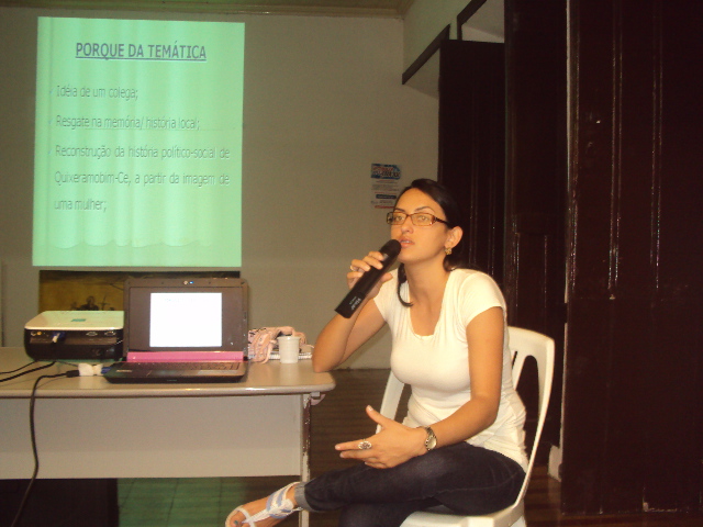 Foi realizada no dia 29 de março, na casa de Antônio Conselheiro, a 15º edição do Papo Cultural, que recebeu como convidada a historiadora Estéfani Cardoso Nobre. Na oportunidade apresentou sua monografia de graduação realizada pela UECE/FECLESC- Quixadá, em 2009, que tem como título: “A Participação Feminina no Cenário Político de Quixeramobim”, tendo como recorte temporal, o período em que a senhora Aldamira Guedes Fernandes foi prefeita, em 1958 ao final de sua gestão 1962. Segunda Esféfani, dona Aldamira Fernandes foi à primeira mulher eleita prefeita no Ceará.