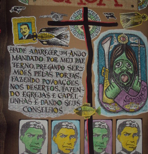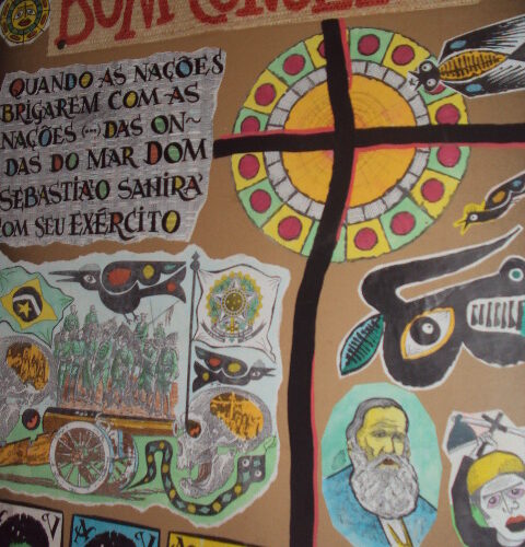 ¨A opção pela forma estética do estandarte, elemento muito usado pela Igreja Católica em procissões ao tempo do conflito, simboliza a presença da Bandeira como porta-voz da ideia libertária a qual se liga Canudos¨, justifica o artista.